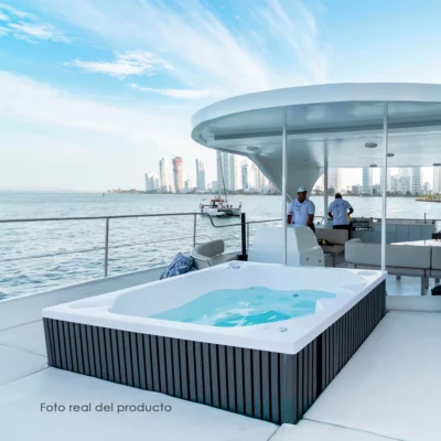 Jacuzzi de empotrar para interior o exterior, ideal para 4 personas, diseño ergonómico con 8 potentes hidrojets y 18 microjets para realizar masajes en las principales zonas musculares del cuerpo. Vive la mejor experiencia de recreación, relajación y descanso con tu Spa en casa. Su diseño permite una fácil instalación sobre mampostería, piedra o madera.