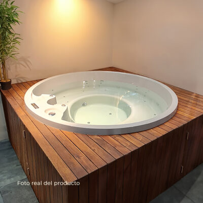 Jacuzzi para interior o exterior, ideal para 5 personas, con un diseño ergonómico y el nuevo deck circular en madera teca. Sus formas suaves y redondeadas abrazan y revitalizan, creando un refugio de calma que invita al descanso y bienestar, favoreciendo la relajación y la conexión entre todos. Equipado con 29 potentes jets que ofrecen masajes en las principales zonas musculares, brindando una experiencia de recreación y descanso inigualable. Disfruta del lujo y confort de tener tu propio spa en casa.