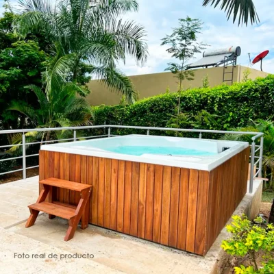 Jacuzzi de empotrar para interior o exterior, ideal para 4 personas, diseño ergonómico con 8 potentes hidrojets para realizar masajes en las principales zonas musculares del cuerpo. Vive la mejor experiencia de relajación y descanso con tu Spa en casa. Su diseño permite una fácil instalación sobre mampostería, piedra o madera.