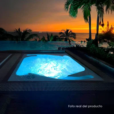 Jacuzzi de empotrar para interior o exterior, ideal para 8 personas, diseño ergonómico con 25 potentes hidrojets para realizar masajes en las principales zonas musculares del cuerpo. Vive la mejor experiencia de recreación, relajación y descanso con tu Spa en casa. Su diseño permite una fácil instalación sobre mampostería, piedra o madera.