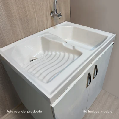 - Mesón en mármol sintético: diseño con lavaplatos integrado, una sola pieza sin empates, fácil de limpiar