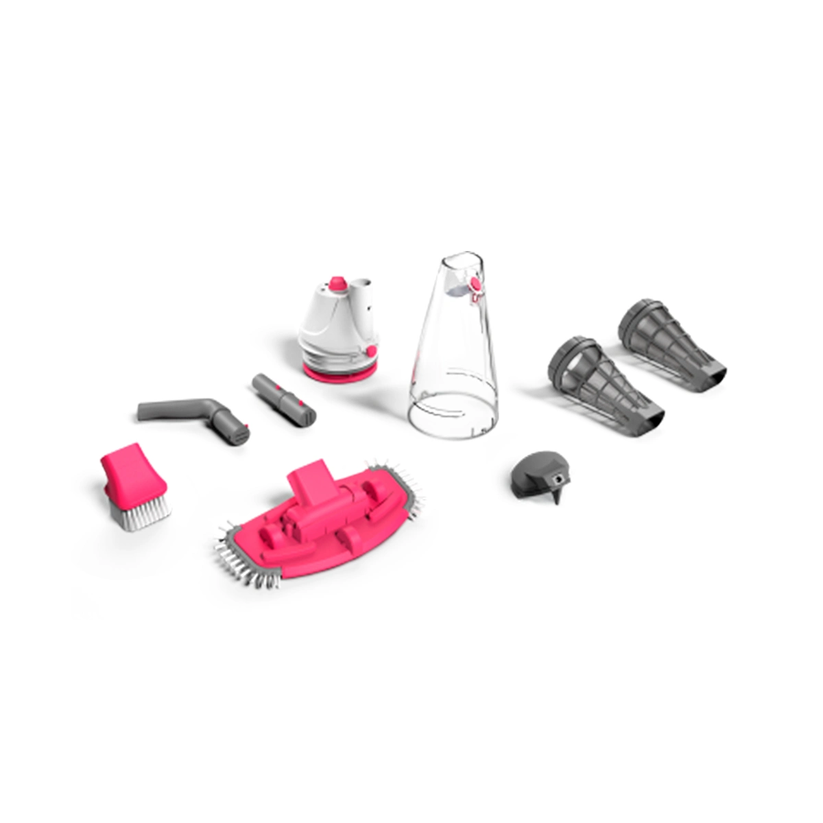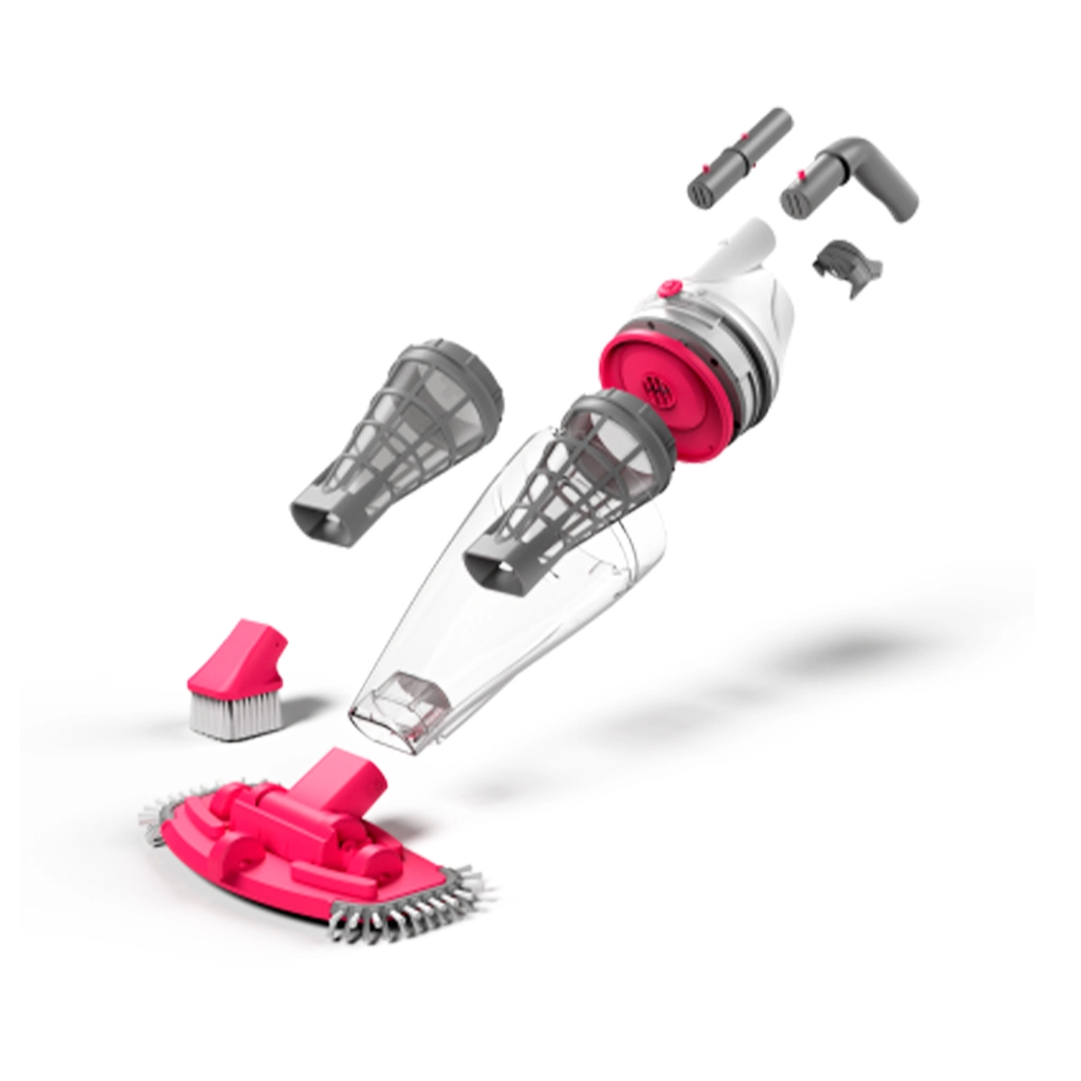 Incluye: Cabezal de aspiración pivotante de gran tamaño, boquilla con cepillo integrado, filtro de acero inoxidable y filtro de malla fina en acero inoxidable