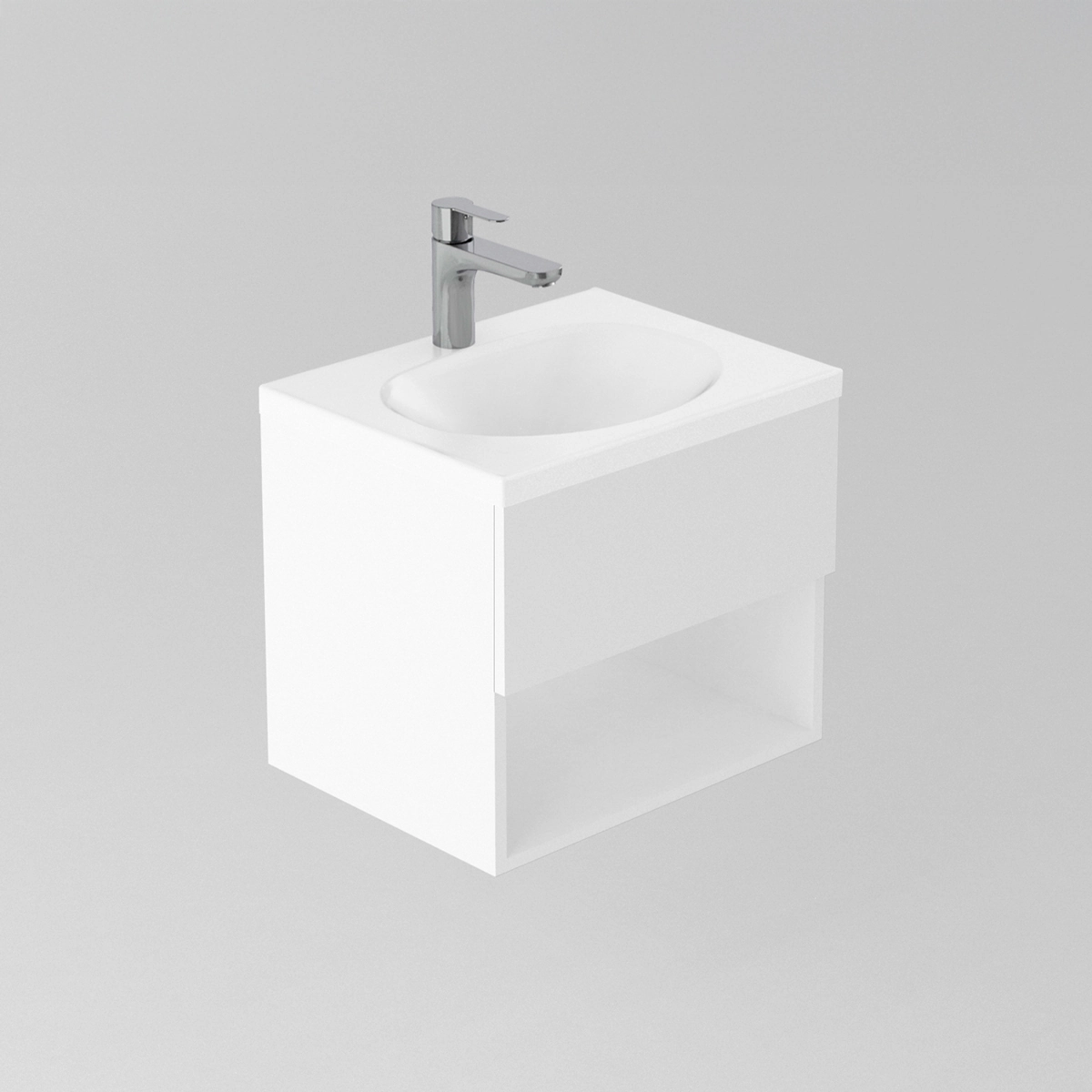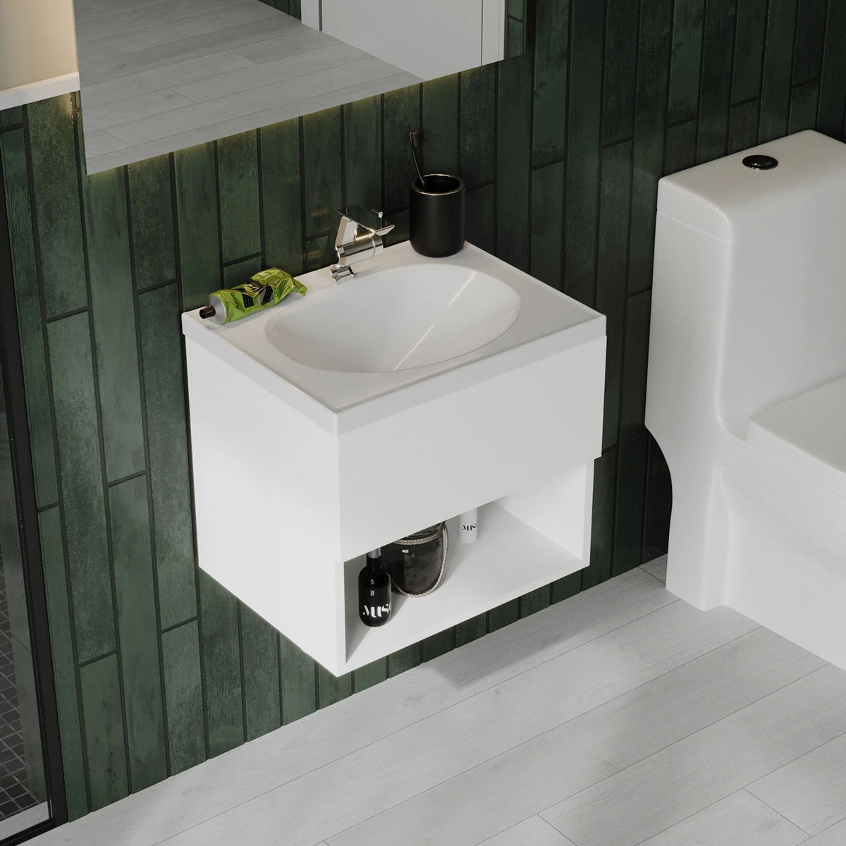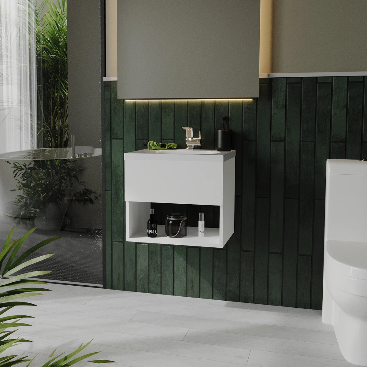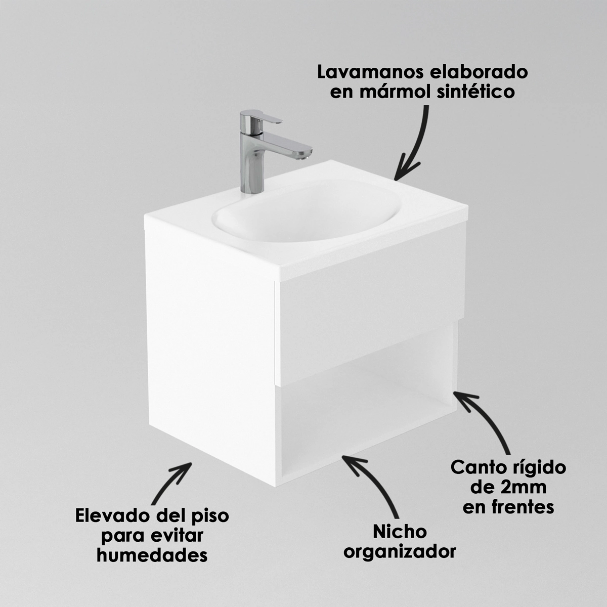 Lavamanos de 48×38 cm, tipo vanity en complemento con el diseño moderno del mueble, éste mantendrá la estética y el orden que su hogar se merece.