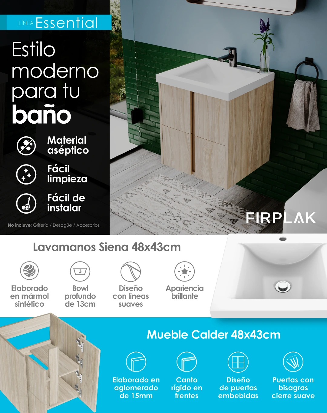COMBO LAVAMANOS SIENA + MUEBLE CALDER ELEVADO 48X43cm