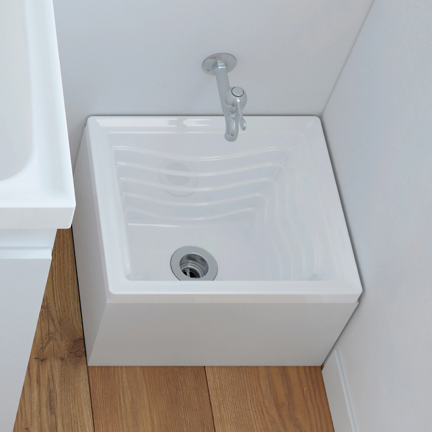 Lavatrapero Aqua 40×35 cm elaborado en mármol sintético, cuenta con fregadero ergonómico, en complemento con el mueble resistente a la humedad (RH) con sus deslizadores facilita el desplazamiento.