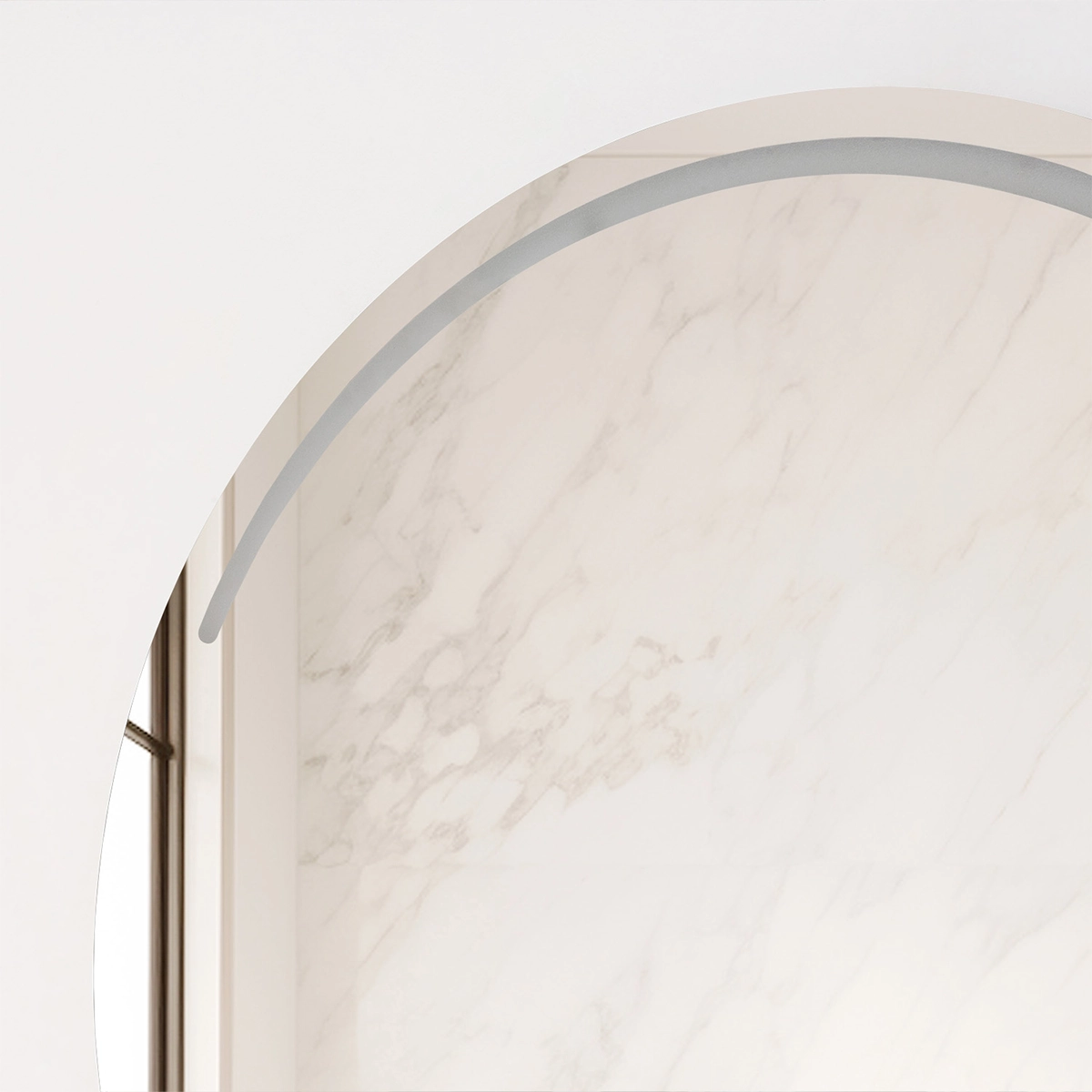 NUEVO Espejo Dallas con diseño circular y sandblasting en su parte superior e inferior, detalle que suaviza la transición entre el espejo y el entorno, creando un efecto visual único. Incluye herrajes de alta calidad para una instalación fácil y segura, además de un ensamble a pared con chaflán, que asegura una colocación precisa y estable. Combínalo con los diferentes diseños de lavamanos y muebles Firplak.