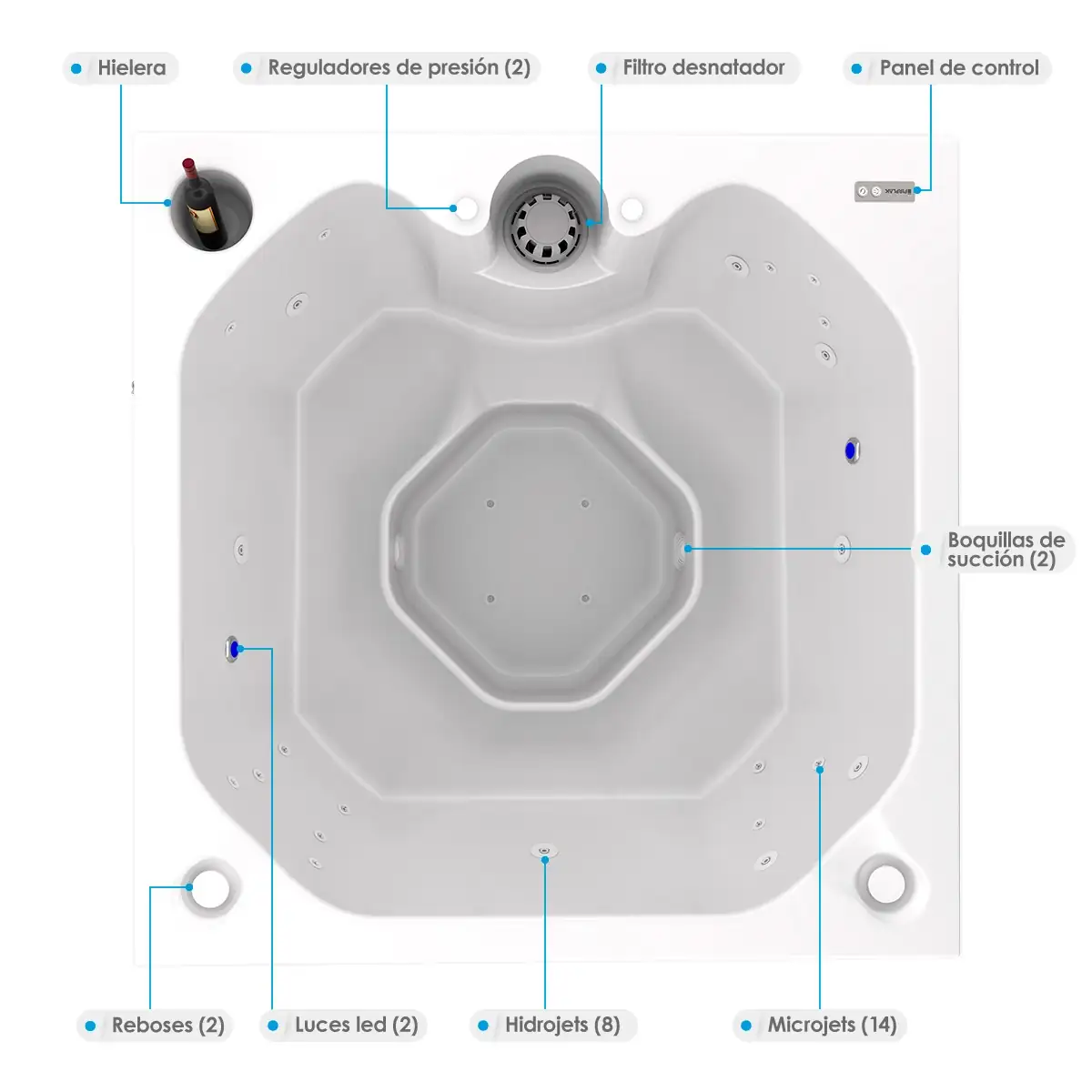 | Jets (Salidas de agua) 26 | Luces led (2) |
