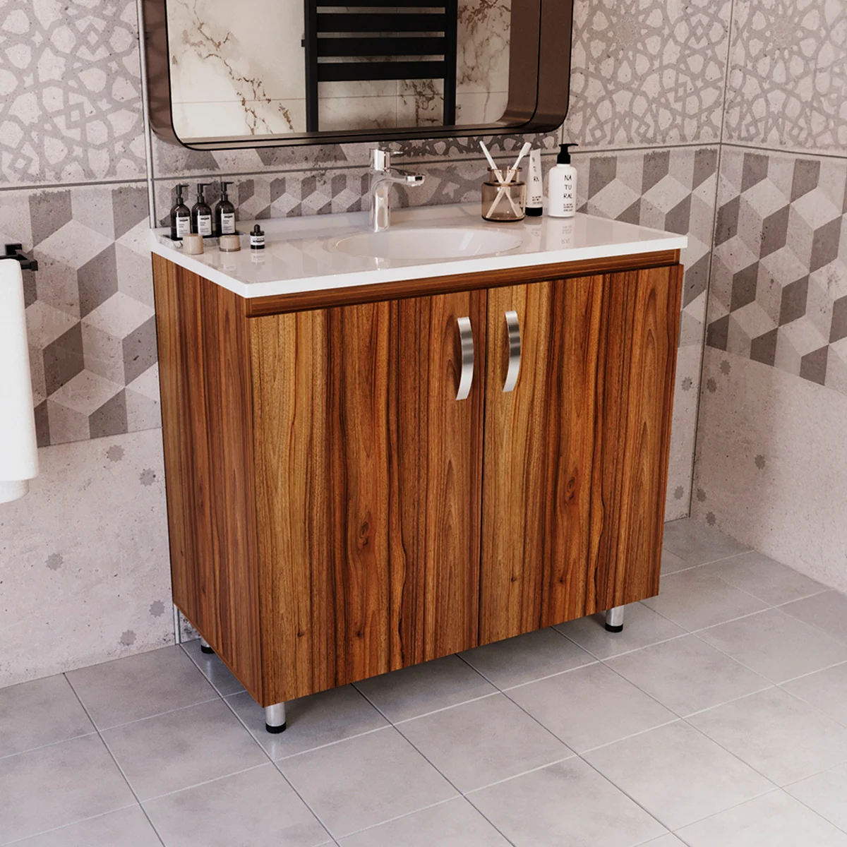 Quadratto es un lavamanos tipo Vanity de apariencia brillante y diseño minimalista, que permite crear espacios modernos y limpios en compañía con el mueble básico piso con amplio espacio de almacenamiento, podrá tener un baño armonioso y organizado.