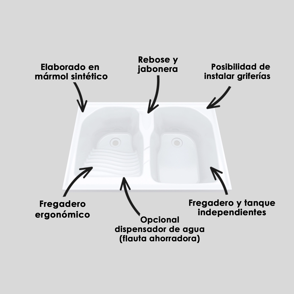 Compuesto por un tanque, jabonera y fregadero, el lavarropas Aqua de Firplak aportará a tus espacios modernidad y comodidad para las labores en el hogar; integra un dispensador de agua (flauta ahorradora) que optimiza el lavado de tus prendas.