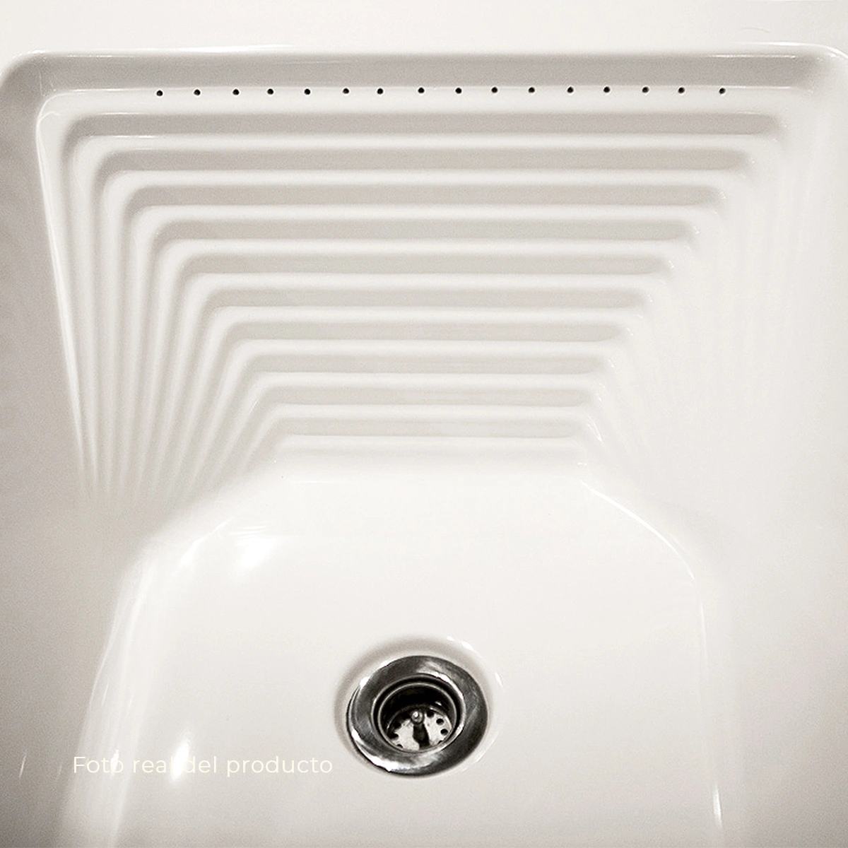 Diseño innovador de lavadero, cuenta con un tanque de gran tamaño y un fregadero ergonómico, tiene la posibilidad de ubicar 5 posiciones de griferías. Recomendamos complementar tu compra con nuestro mueble para lavadero y los accesorios de plomería necesarios para su instalación. Agrégalo a tu pedido como producto opcional.