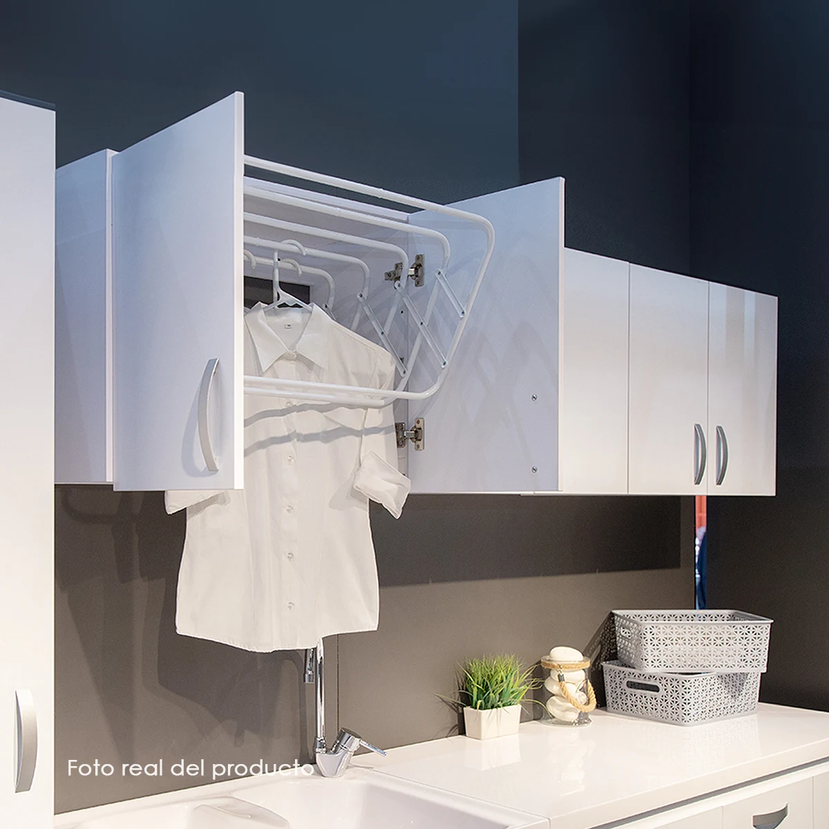 Mueble superior en RH, diseño funcional y amplio espacio de almacenamiento, entrepaño móvil, puertas con bisagras cierre suave y manijas metálicas, posibilidad de adaptación para tendedero de ropa. Perfecto para resaltar y sacar el mayor provecho a tu zona de labores.