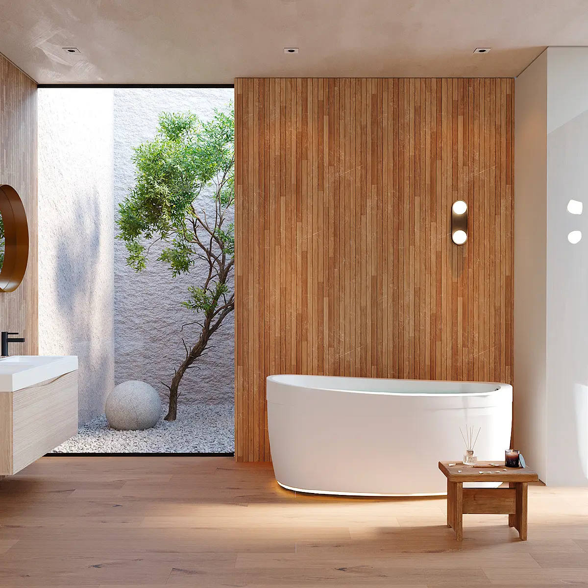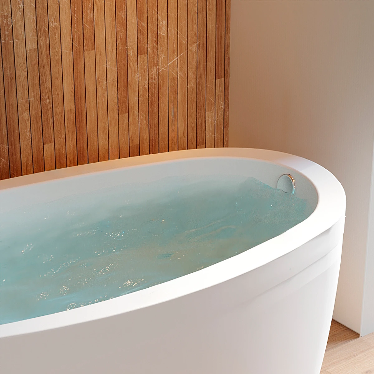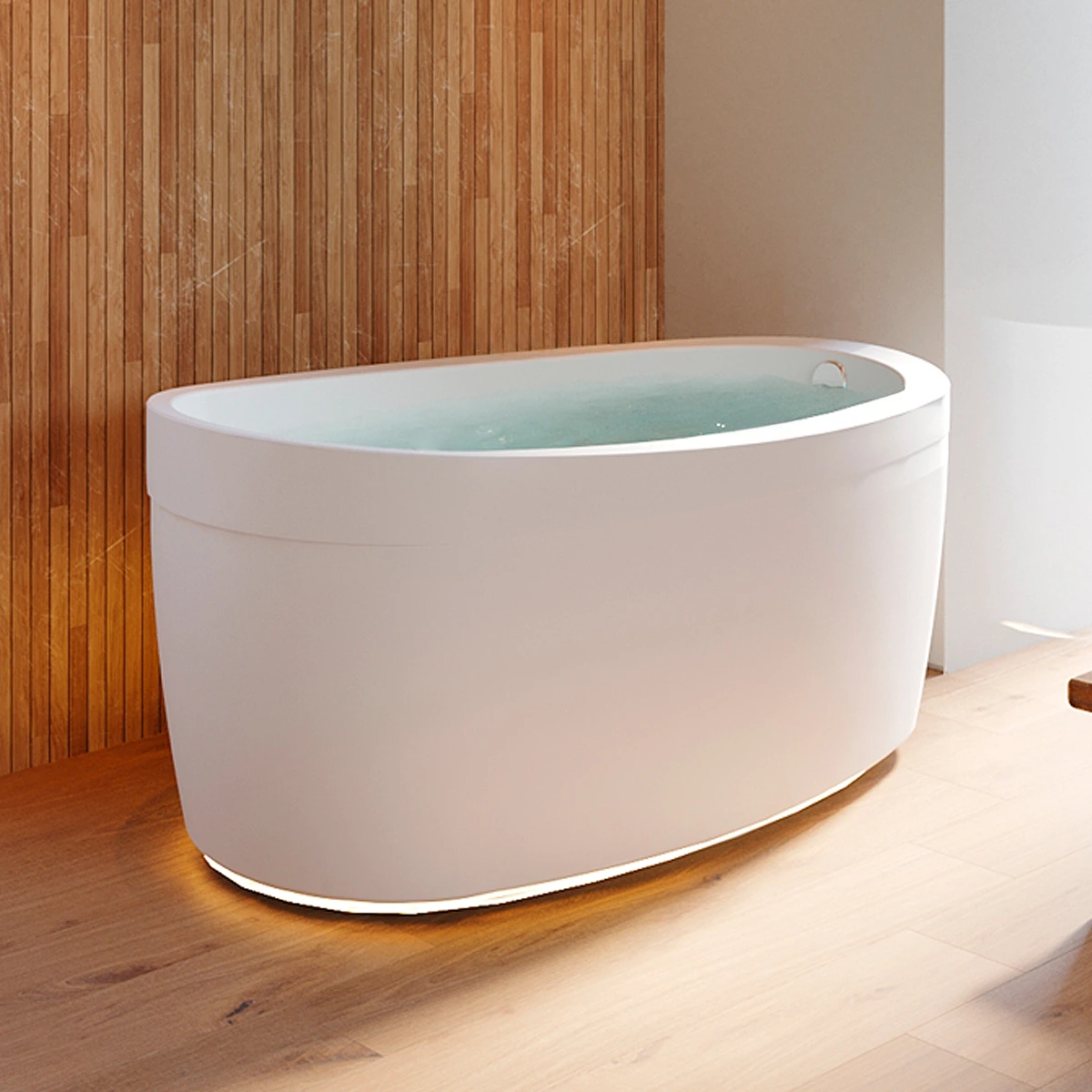Tina tipo Isla con estilo free standing y diseño ergonómico, ideal para una persona y perfecto para espacios pequeños. Vive experiencias de relajación y descanso en casa.