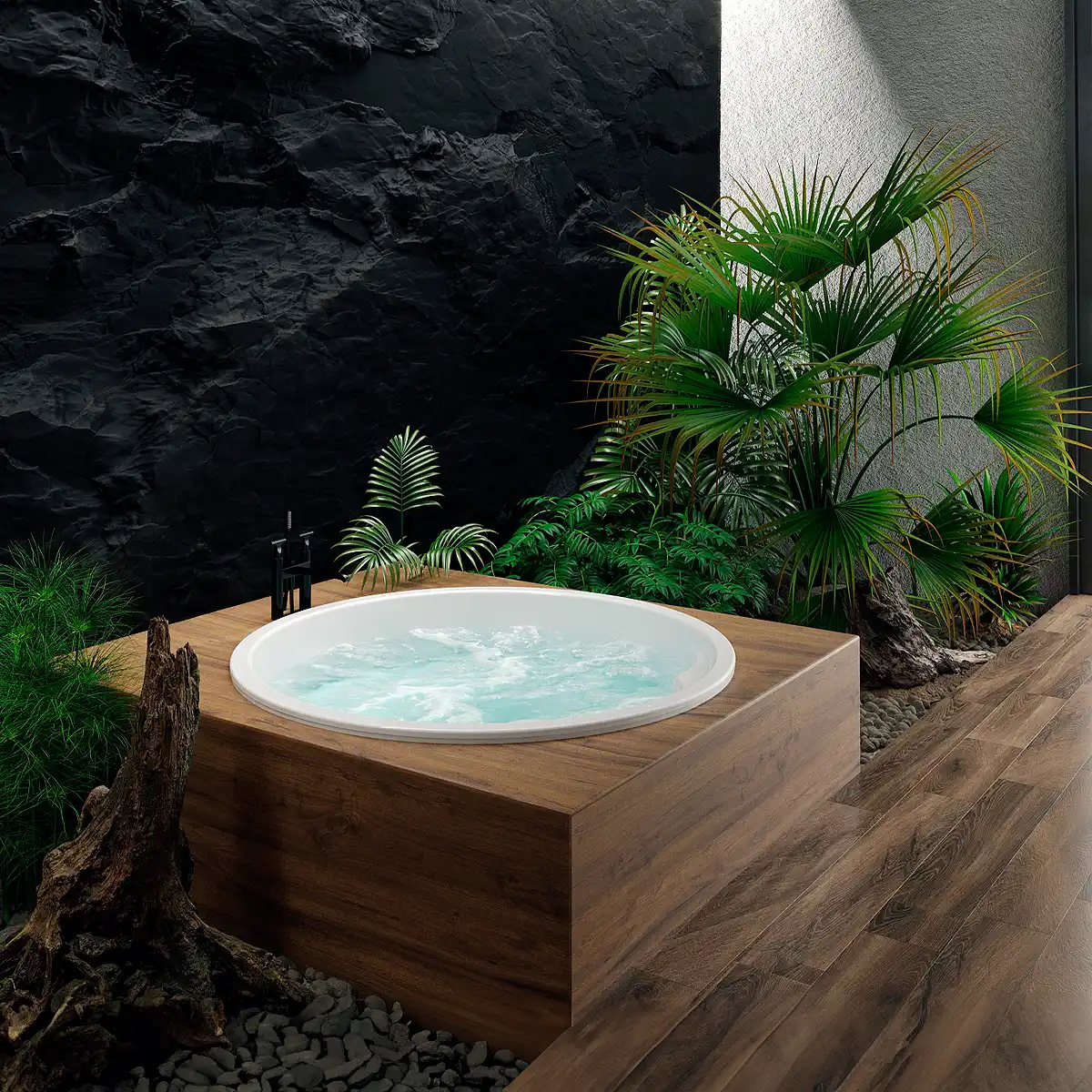 Tina de empotrar con diseño ergonómico, ideal para dos personas y perfecto para espacios pequeños. Vive experiencias de relajación y descanso en casa.