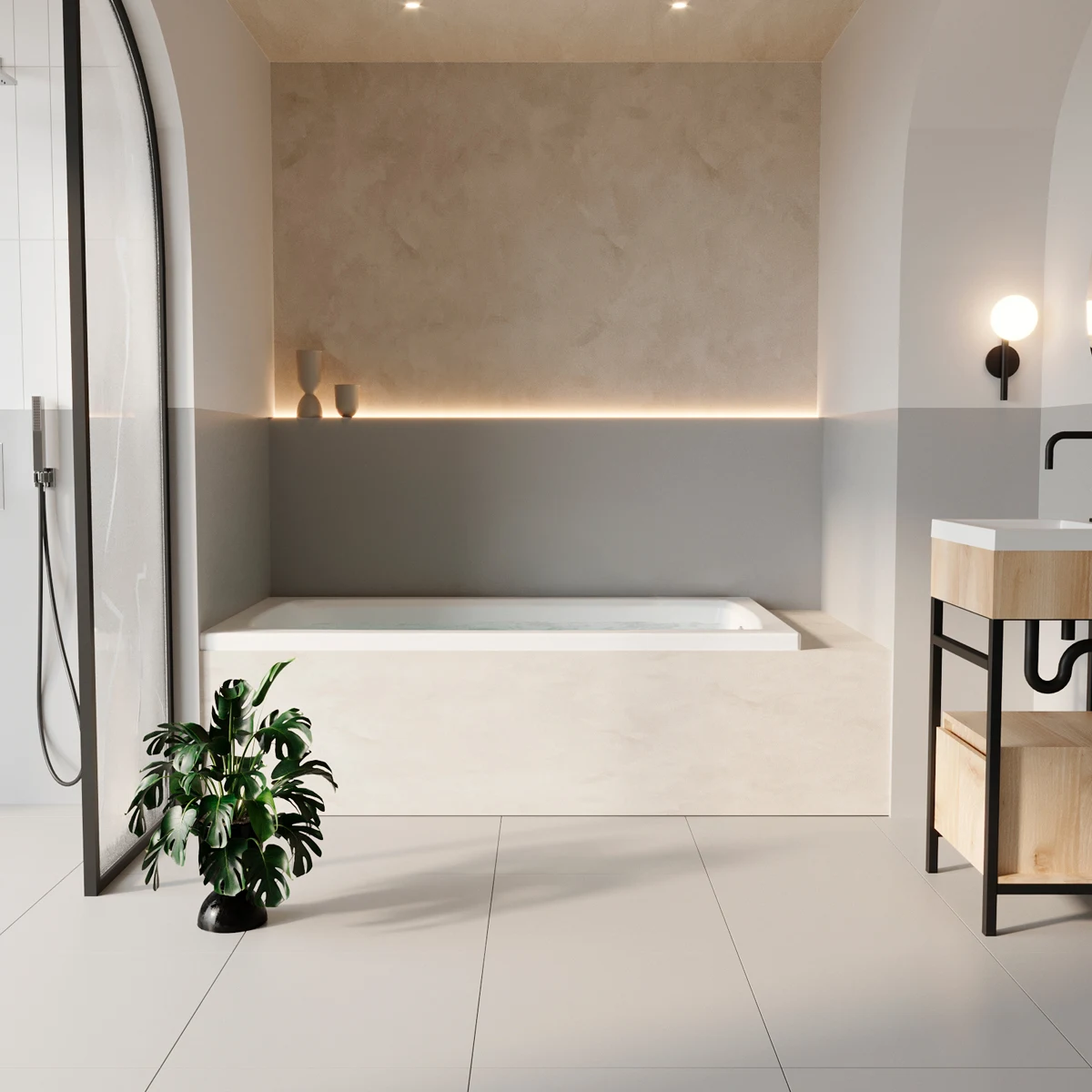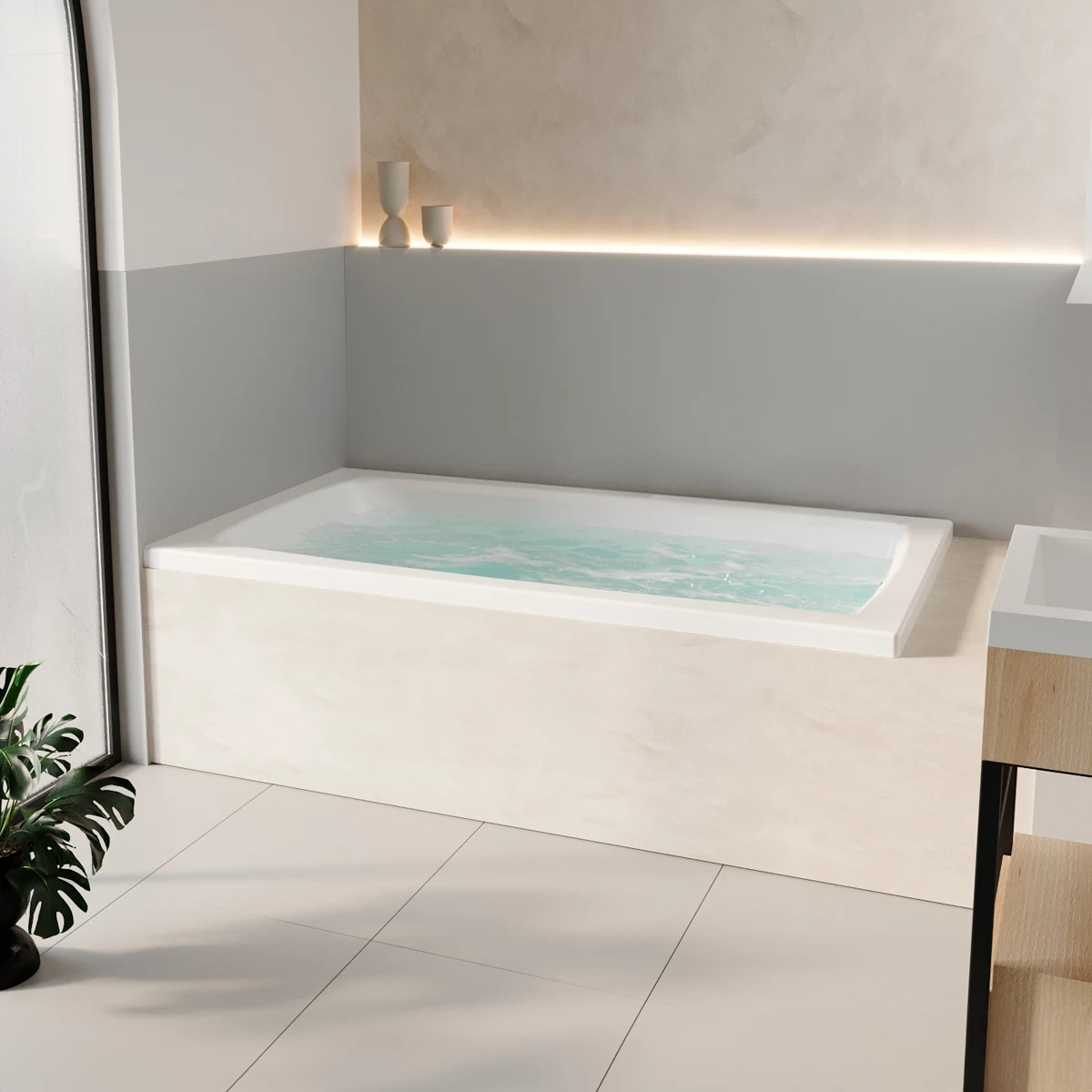 Tina de empotrar con diseño ergonómico, ideal para una persona y perfecto para espacios pequeños. Vive experiencias de relajación y descanso en casa.